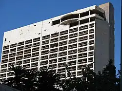 The Battle of the Hotels was a sub-conflict of the Lebanese Civil War that took place in the city's hotel district that involved a number of then-modern high-rises of hotels built during Lebanon's "Golden Age" boom of the mid-to-late 1960s and early 1970s. Among them were the Holiday Inn Beirut on Rue Omar Daouk, the Phoenicia Inter-Continental, the seafront Hotel St. Georges, the Melkart, the Palm Beach, the Excelsior, the Normandy and the Alcazar, some of them were high-rise towers. Not all of the hotels had been completed when the civil war broke out in April 1975. The area, including the Holiday Inn, which opened in 1973, was a symbol of Lebanon's affluence in the period preceding the civil war, an icon in Beirut's rapidly growing landscape. By October 1975, the hotel district became strategically important for fighters in the escalating Lebanese Civil War, because of its proximity to the sea.[1] As Beirut was increasingly divided into West Beirut and East Beirut through 1975 along the Green Line, the Lebanese Front and the Lebanese National Movement (LNM) militias raced to capture the district. Seen by fighters as a strategic military asset,[1] the Holiday Inn in particular soon became a symbolic trophy in the battle, with both sides determined to capture it in an effort to demoralise the other.