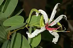 Bauhinia petersiana, the Kalahari white bauhinia,[1] is a species of shrubs from family Fabaceae and the subfamily Cercidoideae found in Botswana, Zambia, Democratic Republic of Congo,[2] Lesotho,[3] Mozambique,[4] Angola, Namibia, Tanzania, South Africa, and Zimbabwe. The species is 2 metres (6 ft 7 in) in height.[5] The flower is up to 15 cm (5.9 in) wide, with five narrow white petals.[6]