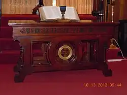 The Rev. George Steininger was installed as pastor on May 10, 1928, and served until November 1, 1938.[17] "The Yearly Report January 1, 1929-1930" reported $11,541 in receipts and disbursements and a Sunday school of 500. In 1940 the church had a membership of 400 with a Sunday School enrollment of 350.[18]