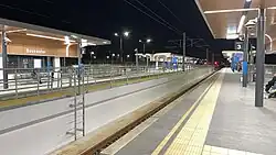 The elevated station was planned to have two platform faces, with contingency for expansion to four platform faces if needed for the Ellenbrook line. The new station was planned to be built immediately south of the rail corridor and existing station, to minimise the impact on services during construction. The two extra platforms were planned to be built where the existing station is, after the new station became operational and the old station is demolished.[27][28][6] It was later confirmed in August 2019 that the two additional platform faces would be included in the project's scope, as the Ellenbrook line was confirmed to branch off from the Midland line at Bayswater.[29][30][31] This will make Bayswater station the largest railway station in Perth outside the Perth central business district.[32] Sinking the station was ruled out, as it would require the rebuild or closure of Meltham station; it would cause major disruption to the Midland line, with services cancelled for a significant amount of time; the design of the Forrestfield–Airport Link tunnel portal in Bayswater precluded sinking Bayswater station; and the regional diesel trains that run along the Midland line, such as the Indian Pacific and The Prospector, would require complex ventilation in a tunnel.[6][27][28]