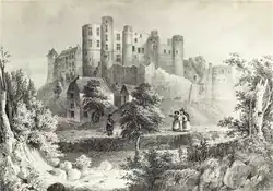 The castle then came into the hands of Gaspard de Heu who had married Velbrück's granddaughter. A partisan of the Dutch resistance and the House of Orange, de Heu was captured by the Spaniards, accused of heresy and treason, and publicly executed in Luxembourg's fish market in 1593. Philip II of Spain confiscated the property and entrusted it to Peter Ernst Graf von Mansfeld, the governor of Luxembourg. Through marriage, the castle became the property of Henri de Chalon and then Gaspard du Bost-Moulin who had to sell it after being ruined by the Thirty Years War. Acting on behalf of the Spanish king, Johann Baron von Beck, governor of Luxembourg, bought most of the property in 1639. He initiated the construction of the Renaissance castle in 1643 but after he died of injuries from the Battle of Lens in 1648, the work was completed by his son in 1649.[2]