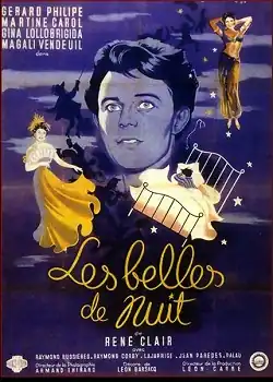 Beauties of the Night (French: Les Belles de nuit) is a 1952 French-Italian fantasy comedy film directed and written by René Clair who co-produced with Angelo Rizzoli. The film stars Gérard Philipe, Martine Carol, Gina Lollobrigida and Magali Vendeuil.[2] It was nominated the Venice Film Festival for Golden Lion (René Clair). It was shot at Boulogne Studios in Paris.