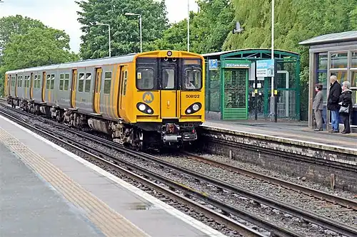 ![]() A Merseyrail Class 508 at Bebington. | |||||