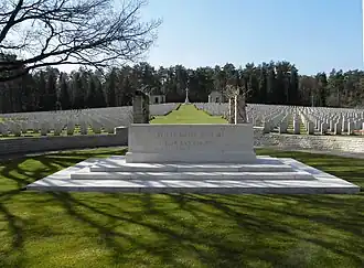 The Becklingen War Cemetery is a military cemetery located in the state of Lower Saxony in north Germany on the Lüneburg Heath. It was built by the Commonwealth War Graves Commission who continue to look after it today. The cemetery lies near Getrudenhof near the village of Becklingen and just north of the former British Army base of Hohne Station where the Headquarters of 7th Armoured Brigade and several brigade units were based until 2015, before the brigade moved back to the UK.