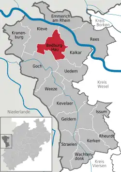 Bedburg-Hau is a municipality in the district of Kleve in the state of North Rhine-Westphalia, Germany. It is located approximately 5 km south-east of Kleve.