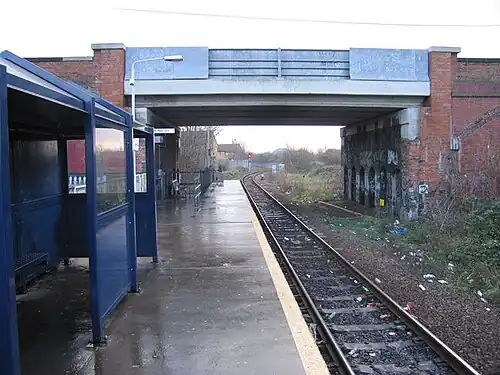 In 1984, a replacement station was opened in the former freight yard, at the north end of the triangle, which enabled services to continue to Bedford Midland. The new connection runs over the route of the Midland's Hitchin line, which closed in 1964.[10] The old station site was abandoned, although some of the furniture, such as the lampposts, was not removed. The site has now been reclaimed by nature.[11][12]