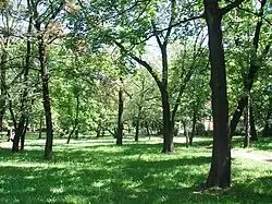 - ^ In maps of Łódź published after 1952 until the early 1990s, the ZUS park was omitted from the list of parks – only Władysław Hibner Park was mentioned. On the maps themselves, only the latter name appeared, and until the 1970s, ZUS park was not recognized as a park area at all. This suggests that ZUS park was absorbed by Władysław Hibner Park, although it is difficult to determine the exact time of this event or whether the incorporation was formalized through a legal act. This situation is confirmed by the content of the Łódź City Council resolution (no. LXXVI/719/94 from 27 May 1994), which gave the name Legionów Park to the previously unnamed park located on the eastern side of Pabianicka Street between Sanocka Street and Independence Square (the former Władysław Hibner Park).[52]