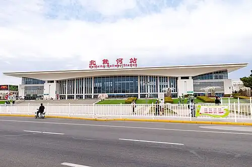 Beidaihe railway station (Chinese: 北戴河站) is a Chinese railway station located on the Beijing–Harbin railway and Tianjin–Qinhuangdao high-speed railway[1] in Beidaihe District, Qinhuangdao, Hebei, China.