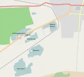 - Gravel pit (Šljunkara) is the largest lake, with a large beach and an island.