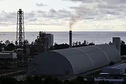 Being the location of Brunei's main natural gas and oil resources, the district is an important area. There, Seria oil field was first found in 1929,[46] and commercial production started in 1932.[47] Rasau is dominated by one of Brunei's two onshore oil fields, operated by BSP, discovered in 1979, and began production in 1983, with wells located primarily between the Rasau Bridge and Sungai Tujoh, as well as on the east side of the Belait River.[48] The gas sector grew significantly as well, and at Lumut, where one of the biggest liquefied natural gas facilities in the world was established by Brunei LNG. In the natural gas sector, the Bruneian government, BSP, and Mitsubishi Corporation are partners, while the oil industry functions as a joint venture between the Bruneian government and the Royal Dutch Shell.[47]