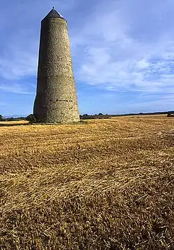 This is located about 3 km east of Belford, and is an 18th-century tapering cylindrical stone tower with a conical roof of Welsh slate. Its usage is uncertain, being sometimes classified as a windmill and sometimes as a dovecote.[3]