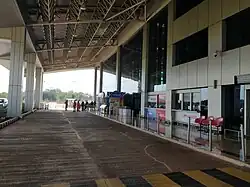 A new terminal building was inaugurated on 14 September 2017 as part of the airport expansion project. The terminal building is spread over 3,600 square metres and has a capacity to accommodate over 300 passengers. It has two baggage conveyor belts and six check-in counters. It has an apron for parking of three Airbus A320 and Boeing 737 aircraft.[4] The old apron has two parking stands designed for the ATR 72 and similar aircraft.[20][21] There are also two additional aprons, one on the north side of the runway that serves as an isolation bay and one on the south side. These aprons are each connected by single taxiways to runway 08/26, which measures 2,300 by 45 metres (7,546 ft × 148 ft).[21]