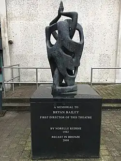 A Memorial to Bryan Bailey is a sculpture by Norelle Keddie, originally produced in 1962. It commemorates the death of Bryan Bailey, the theatre's first director, in a car crash in 1960.[38] It was recast in bronze and placed on its current plinth in 2008. It sits between the fountain and the front of the theatre.