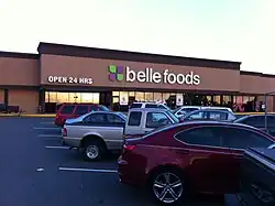 Belle Foods, LLC was a family-owned chain of American supermarkets headquartered in Birmingham, Alabama.[1] The company had a relatively short lifespan. It began operating its rebranded Bruno's and Food World and Piggly Wiggly Stores on July 1, 2012, but filed for bankruptcy just one year later.[2] Before owners Bill White and Jeff White purchased the stores from Southern Family Markets in mid-2012, the 57-store grocery chain employed approximately 3,000 people.[3]