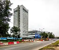 In 1957, the Radio Control of the Belarusian SSR was reorganized into the State Committee of the Belarusian SSR on Television and Radio Broadcasting (Gosteleradio).[12] In the 1960s, 70% of the territory of Belarus was provided with television.[14] A two-program TV was formed (based on the programs of the 1st program of the Moscow Central Television).[17] In 1960, complete radio coverage of Belarus was completed,[8] new radio stations appeared: "Belarus" (1962), which provided regular broadcasting to foreign countries,[18] "Belarusian Youth" (1963), "Rural Life" (1964).[8] In 1968, The department of theory and practice of radio broadcasting and television was opened at the Faculty of Journalism of the Belarusian State University with the aim of training qualified personnel.[19] The volume of its own broadcasting was 880 hours a year, with a third of that dedicated to political education.[16] In the mid-1960s, its own production of feature and documentary television films began (on the basis of the main editorial office of Telefilm). In 1962, with the starting of Intervision, an exchange of programs with other republics began. In 1961, the Minsk Television Studio and the Committee for Radio and Television were merged into one creative team, in March 1964 it was renamed into the Studio of the Belarusian Television.[20]
