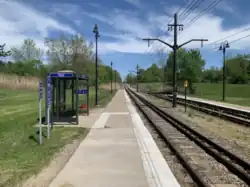 Belvoir station is a stop on the light rail Green Line of the RTA Rapid Transit in Shaker Heights, Ohio. It is located in the wide landscaped median of Shaker Boulevard (Ohio State Route 87) at the intersection of Belvoir Boulevard on the north side and Belvoir Oval on the south side.