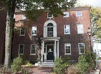 The Benedict House, also known as the Thomas Penhallow House, is a historic house at 30 Middle Street in Portsmouth, New Hampshire. Built in 1810–1813, it is a fine example of Federal style architecture, and may be an early work of the noted local builder Jonathan Folsom. The house was joined in 1954 to the adjacent Portsmouth Academy building when it housed the city's public library;[2] this complex is now home to Discover Portsmouth, a local tourism promotion organization.[3] It was listed on the National Register of Historic Places in 1973.[1]