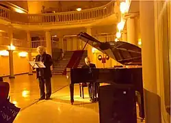 From January 2008, begins the tour of poetry and music Anche ora che la luna.[9] Initially, in Salento with the composer Giovanni Renzo at the piano, after alone and performing throughout Italy in places like the Literary Cafe in Rome and the Civic Theatre in Sassari. This tour[10] will continue up to 2011.