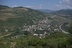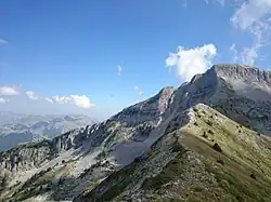 The geographical formations of the region are frequently mentioned in local folklore. According to legend, Tomorr personified a giant who fought his brother Shpirag, personified by a nearby mountain, for the love of a young woman.[11] The two brothers fought bitterly for her affections and ended up killing each other. Deep in sorrow, the legend states, the grieving woman for whom they had contested wept over their deaths; her tears created the Osum river.[9][11][22] She was then said to have turned to stone, becoming the foundation on which Berat Castle is now built.[11] Both Tomorr and Shpirag are visible from the city of Berat.