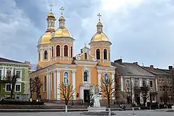 Berezhany (Ukrainian: Бережани [bereˈʒɑnɪ] ; ⓘPolish: Brzeżany; Yiddish: ברעזשאַן, romanized: Brezhan) is a small city in Ternopil Raion, Ternopil Oblast, western Ukraine. It lies about 50 km (31 mi) from the administrative center of the oblast, Ternopil. Berezhany hosts the administration of Berezhany urban hromada, one of the hromadas of Ukraine.[1] Population: 17,139 (2022 estimate).[2]