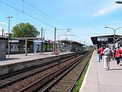 In 2003 the distance to the U-Bahn station Wilmersdorfer Straße was shortened by shifting the two S-Bahn platforms about 200 m (660 ft) further to the east and the opening of a new eastern entrance near the corner of the shopping street. In recent years the tracks have been equipped with noise barriers and the 1970s entrance building has been thermally refurbished.