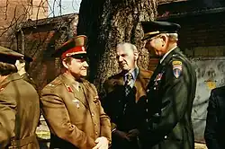Brigadier-General John E. Rogers (USA) and Lieutenant-Colonel Alexander Dorofeev (Soviet Union) at Spandau Prison, in 1981 | Lieutenant-Colonel Alexander Dorofeev (Soviet Union), бригадный генерал John E. Rogers (USA), W. Berlin, 1 April 1981 | Lieutenant-Colonel Alexander Dorofeev (Soviet Union) and Brigadier-General Leroy N. Suddath (USA) at Spandau Prison, in 1982 | Soldiers of the Berlin Brigade guarding Spandau Prison |