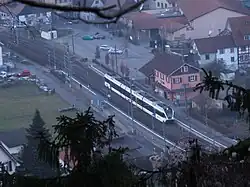 Berlingen railway station (German: Bahnhof Berlingen) is a railway station in Berlingen, in the Swiss canton of Thurgau. It is an intermediate stop on the Lake line and is served by local trains only.[3]