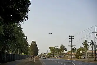 Berrimah Road follows the alignment of a 19th-century track that linked a quarantine station at East Arm to Fred's Pass Road, the main thoroughfare south of Darwin prior to the construction of the Stuart Highway. In 1941, during World War II a major field hospital named "Berrimah" was located on the present site of Kormilda College, at the northern end of Berrimah Road.[3] The hospital site was bombed during Japanese air raids on 19 February 1942, and was subsequently relocated inland to Adelaide River, however by this time the name Berrimah Road was in common use for the quarantine station track. The name was officially gazetted in September 1952.[4] The road has been significantly upgraded since the opening of East Arm Port in 2000.
