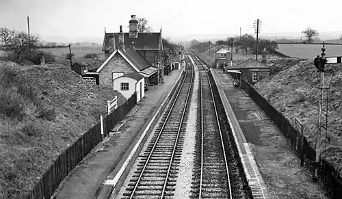 Berrington railway station was a railway station on the Severn Valley line serving the village of Berrington, Shropshire. It opened in 1862[1] with a single platform and a siding. By 1894[2] it had acquired an additional platform along with a signal box and the sidings had been expanded. Despite the name it was actually closer to the neighbouring village of Cross Houses. Although thought by some people to have been closed as part of the Beeching axe in 1963 its planned closure pre-dated his report. The station and its buildings now house a private dwelling.