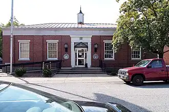The Berryville Post Office is a historic post office building at 101 East Madison Avenue in Berryville, Arkansas. It is a single-story brick Colonial Revival structure, topped by a hip roof and cupola with finial. It was designed by Louis A. Simon and built in 1938–39. Although primarily intended to serve the needs of the United States Postal Service, the basement housed offices of various county agents. The building is primarily notable for the plaster sculpture above the postmaster's office, which was created in 1940 by Daniel Gillette Olney as part of the Treasury Department's Section of Fine Arts, a jobs program for artists.[2]