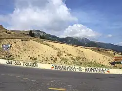 "Bessarabia, Romanian land" (Romanian: Basarabia, pământ românesc), "Bessarabia is Romanian land" (Basarabia e pământ românesc) or "Bessarabia is Romania" (Basarabia e România, also Basarabia este România[1]) is a popular and commonly used[2][3][4][5][6] Romanian nationalist and irredentist slogan posing claims over the geographical region of Bessarabia, today divided between the Republic of Moldova and parts of Ukraine.[5] According to the Romanian newspaper Adevărul, the use of this slogan as a patriotic catchphrase started in 2006 from a group of anonymous young Romanians from Bucharest.[7]