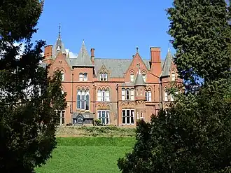The first generations of Dukes of St Albans resided elsewhere. In the 1700s, much of the surrounding land was enclosed into farms, with only a small portion of Bestwood Park remaining forested.[1] The 10th Duke decided to seat his family at Bestwood and demolished the previous lodge. In 1862 he commissioned Samuel Sanders Teulon to rebuild the lodge in the Victorian Gothic Revival style. The new lodge was completed in 1865. Teulon also built nearby Emmanuel Church for the Duke in 1869.