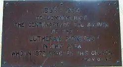 It replaced an earlier slab church built in 1864 when a group of German immigrants who immigrated on the ship Susannah Godeffroy first settled in the area and gave it the name Bethanien.[2] The graveyard next to the church has graves dating from 1866. In 1875, the railway line was built, passing close to the church and over the site of the earlier building.[1]