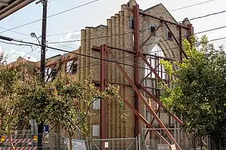 In 1997, the last church service was held in the building, after which it was abandoned.[2] On January 24, 2005, a fire destroyed the interior of the church, leaving only the exterior brickwork intact.[3] In 2009, the church was sold to the City of Houston. Soon thereafter, the city erected steel supports and a concrete floor to preserve the building.[3]