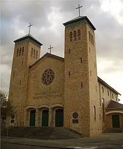 Regina Coeli Roman Catholic Church is Australia's only Catholic war memorial church. It was built in the early 1960s to commemorate the Australian-US alliance during World War II. The flags of both nations are permanently hung on either side of the main altar, and a special Mass attended by US service personnel and diplomatic representatives is conducted there annually in commemoration of the Battle of the Coral Sea. Regina Coeli is sited prominently on the highest point in Beverly Hills, and is a landmark visible for many kilometres in all directions.