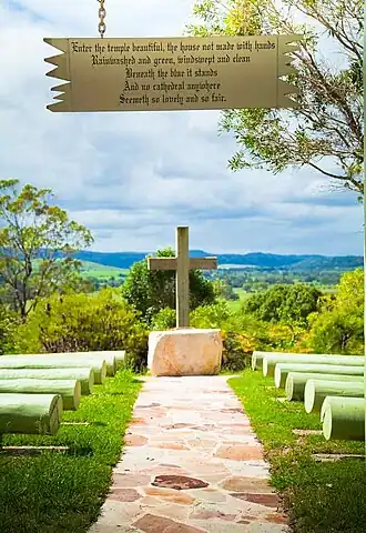 Bexhill is well known for its open air cathedral which is managed by volunteers from the nearby Uniting Church.[8] The "cathedral" has native gardens and overlooks a large length of valley and hills along Coopers Creek. It is well used for wedding services and special events.[9]