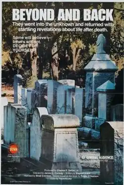 Beyond and Back is a 1978 American documentary/"death-sploitation flick"[3][4] produced and distributed by Sunn Classic Pictures that deals with the subject of near death experiences.