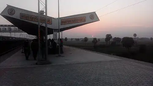 Bharpura Pahlejaghat Junction, station code PHLG, is a railway station in Sonpur division of East Central Railway. Bharpura Pahlejaghat Junction is located in Sonpur city in Saran district in the Indian state of Bihar. It is located on the north end of Digha–Sonpur rail–road bridge,[1] while Patliputra is on the south end of the bridge.[2][3][4][5] Pahleja Station is 3.81 km from Sonpur and 11.46 km from Patliputra.[6] It is connected to Sonpur on its east side and Parmanandpur station on its west side. In June 2017, a 20 kW roof top hybrid solar plant with 20% storage facility installed and commissioned at Pahaleja Ghat railway station.[7]
