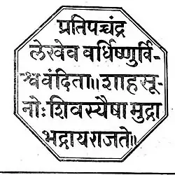 ![]() Rajmudra (royal seal) of Shivaji I | |