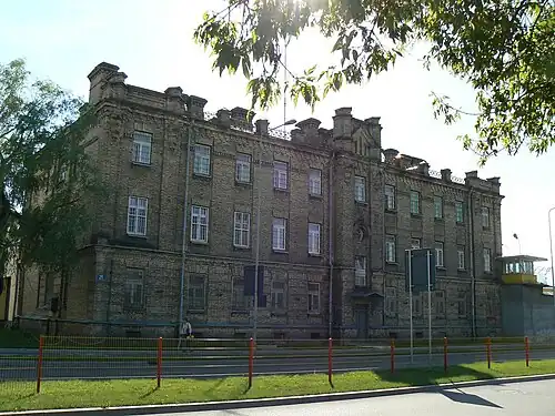 This prison complex was built in 1911–1912. When constructed, the facility was located on the outskirts of the city, currently surrounded by residential district. It was used first by Tsarist Russia, and in 1915–1919 by the Germans.[1] In the interwar period, it was administered by the Polish authorities.[2] During World War II, it was managed first by the Soviets, and then by the Germans. The Germans, retreating in July 1944, mined the facility.