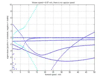 Once a turn is established, the torque that must be applied to the steering mechanism in order to maintain a constant radius at a constant forward speed depends on the forward speed and the geometry and mass distribution of the bike.[11][23] At speeds below the capsize speed, described below in the section on Eigenvalues and also called the inversion speed, the self-stability of the bike will cause it to tend to steer into the turn, righting itself and exiting the turn, unless a torque is applied in the opposite direction of the turn. At speeds above the capsize speed, the capsize instability will cause it to tend to steer out of the turn, increasing the lean, unless a torque is applied in the direction of the turn. At the capsize speed no input steering torque is necessary to maintain the steady-state turn.