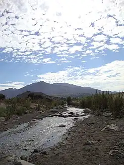 Big Tujunga Creek is a major stream in Los Angeles County in the U.S. state of California. From its headwaters high in the San Gabriel Mountains, it flows generally southwest for 28.8 miles (46.3 km),[4] joining Little Tujunga Creek to form the Tujunga Wash near Pacoima. The stream is sometimes considered as one with the Tujunga Wash, which is the continuation of Big Tujunga to the Los Angeles River, bringing the total length to more than 40 miles (64 km). The name of the stream is derived from a Tongva village name.[5]