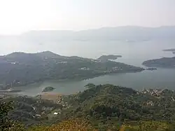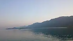 There are no natural lakes in Bilaspur district, but the artificial Gobind Sagar is one of the largest lakes in India. It stores a huge volume of water, which is used for both irrigation and electricity generation.[3] It is formed by the Bhakra Dam, which was completed in 1963. The lake is 90 km long and its total area is 168 km2. About 90% of this area belongs to Bilaspur district; the remainder belongs to Una district.[3] The lake's water level fluctuates. It is designated as a waterfowl refuge, and about 50 species of fish live in its waters.[4] Gobind Sagar is a popular tourist destination,[3] and it is also a site for various recreational activities like fishing, swimming, sailing, rowing, and water-skiing.[4]