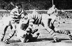 He played on the wing and scored two-tries in the 30–13 victory over Hull F.C. in the 1958–59 Challenge Cup Final at Wembley Stadium on Saturday 9 May 1959, in front of a crowd of 79,811.[18]