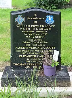 William Edward Scott (17 May 1882 – 16 August 1936) was an Irish footballer who played as a goalkeeper for, among others, Everton, Leeds City, Liverpool and Ireland. In 1913 Scott was a member of the Ireland team that beat England for the first time with a 2–1 win at Windsor Park. His younger brother, Elisha Scott, was also a notable goalkeeper and also played for Liverpool and Ireland. It was Billy Scott who recognised his younger brother's potential and recommended him to Liverpool after an unsuccessful trial at Everton.