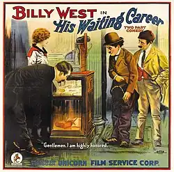Billy West (September 22, 1892 – July 21, 1975) was a silent film actor, producer, and director. Active during the silent film era, he is best known as the premier Charlie Chaplin impersonator. He was a star in his own right, appearing in more than 100 films for nine different companies. Beyond acting, he also directed short comedies in the 1910s and '20s, and produced films. West retired as an actor in 1935,[1] but remained in the employ of Columbia Pictures into the 1950s.