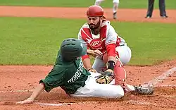The Binghamton Bearcats baseball team is a varsity intercollegiate athletic team of Binghamton University in Vestal, New York, United States.[2] The team is a member of the America East Conference, which is part of the National Collegiate Athletic Association's Division I. The team plays its home games at Varsity Field in Vestal, New York. The Bearcats are coached by Tim Sinicki.