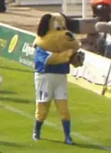 Birmingham's supporters are generally referred to as "Bluenoses" in the media and by the fans themselves; the name is also used in a derogatory manner by fans of other clubs.[124][125] A piece of public sculpture in the form of a ten-times-life-size head lying on a mound near the St Andrew's ground, Ondré Nowakowski's Sleeping Iron Giant, has been repeatedly defaced with blue paint on its nose.[126] Between 1994 and 1997, the club mascot took the form of a blue nose,[127] though it is now a dog named Beau Brummie, a play on the name Beau Brummell and Brummie, the slang word for a person from Birmingham.