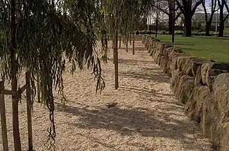 Speaker's Corner, in the south-eastern corner of Birrarung Marr, was a remnant of Yarra Park between the Jolimont Rail Yards and Yarra River that was used as a location for public lectures, protests and demonstrations. For example, in 1916, an estimated 50,000 people came to protest against conscription. These activities had been moved to the north bank of the Yarra River after construction of the Queen Victoria Monument at their earlier venue on the south bank. The site was one of the few public spaces in Melbourne where large public assemblies and speeches were allowed without a prior permit. The mounds that speakers used to stand on to address these crowds can still be seen in this corner of Birrarung Marr.