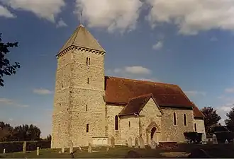 Bishopstone was an episcopal manor, hence its name meaning "dwelling place of the bishop". The church, dedicated to Saint Andrew, is thought to date from the 8th century, and may well be the oldest in the county. Bishopstone church has an ancient canonical sundial above its porch. The sundial is inscribed with the name Eadric, probably Eadric of Kent, the King of Kent in 685/6.[2] The church was rebuilt in 1200.